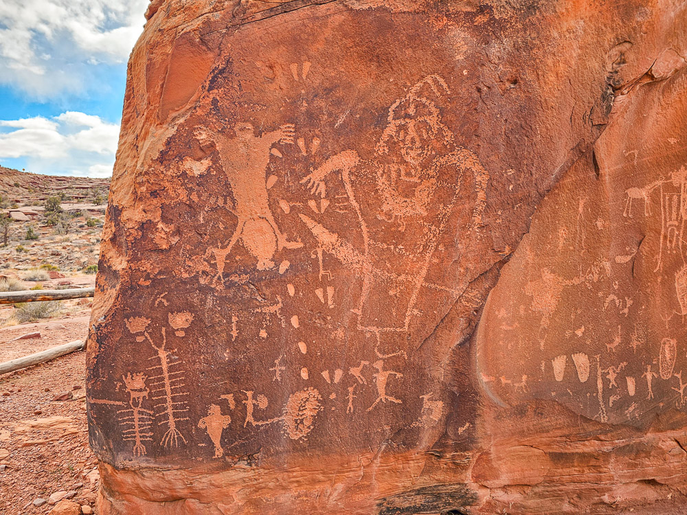 First, not far from Funnel Arch itself is Birthing Rock, a large boulder covered in extensive and very unique petroglyphs. You’ll pass it in the canyon on the way to the arch, so it’s easy to stop and take a look. You can find the location here.